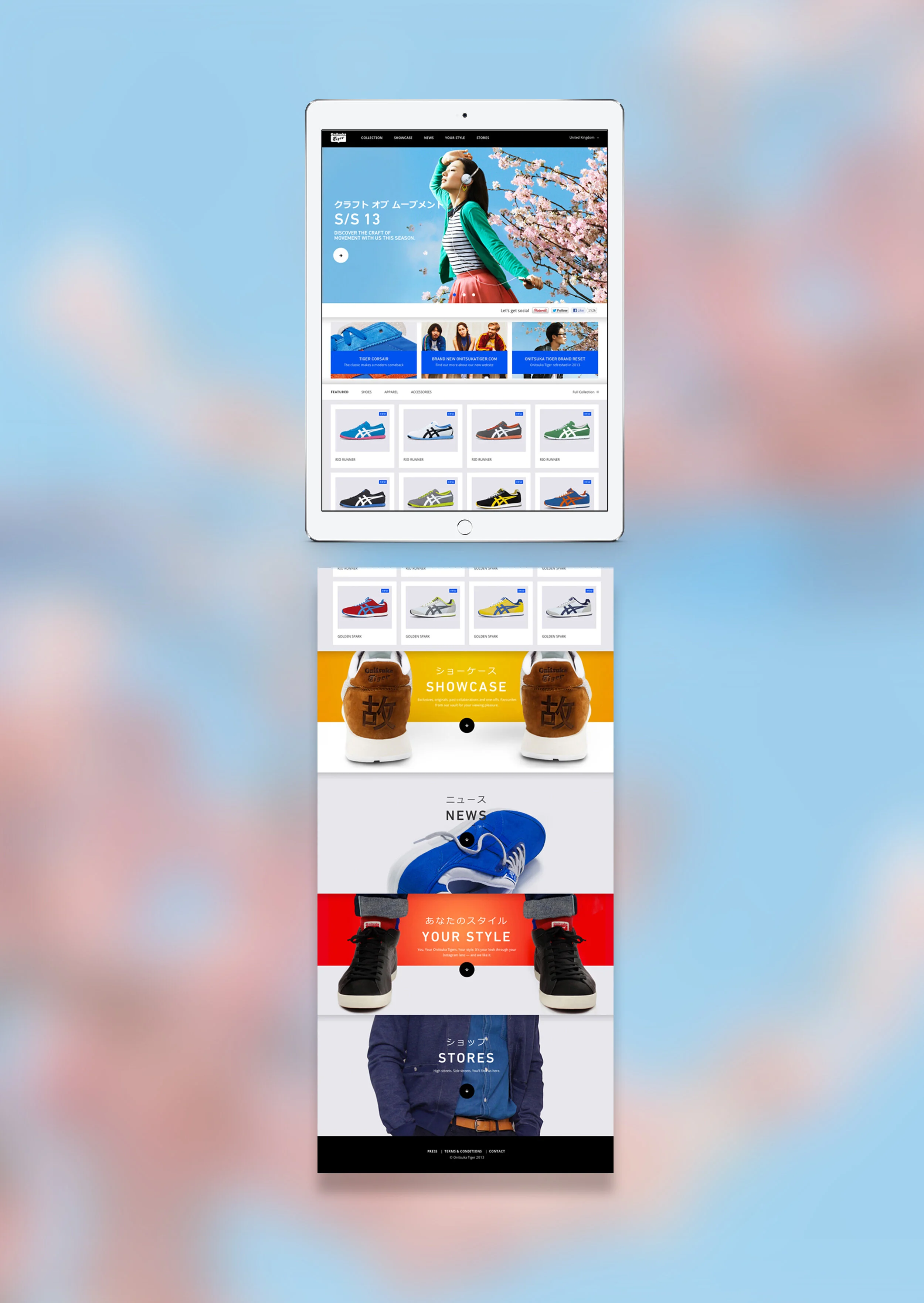 When we started redesigning the global Onitsuka Tiger website in 2012, the goal was to create a platform that was both fluid and unique in its nature. With the brand being natively Japanese, it needed to convey a strong sense of minimalism and craft. The flow of a Ryuichi Sakamoto song, the quirkiness of a Studio Ghibli movie, and the refinement of Japanese typography - believe it or not - all played a role in creating what later became the final product. Using the core idea of a Japanese tea house, we built an online structure that reshaped seamlessly by opening and closing -much like screen doors - for an uninterrupted browsing experience. The solution was a single page website consisting of collapsing and expanding modules revealing content in real time. The success of doing so (in 2012) without compromising performance or SEO came down to a dedicated dev team that truly understood the vision.